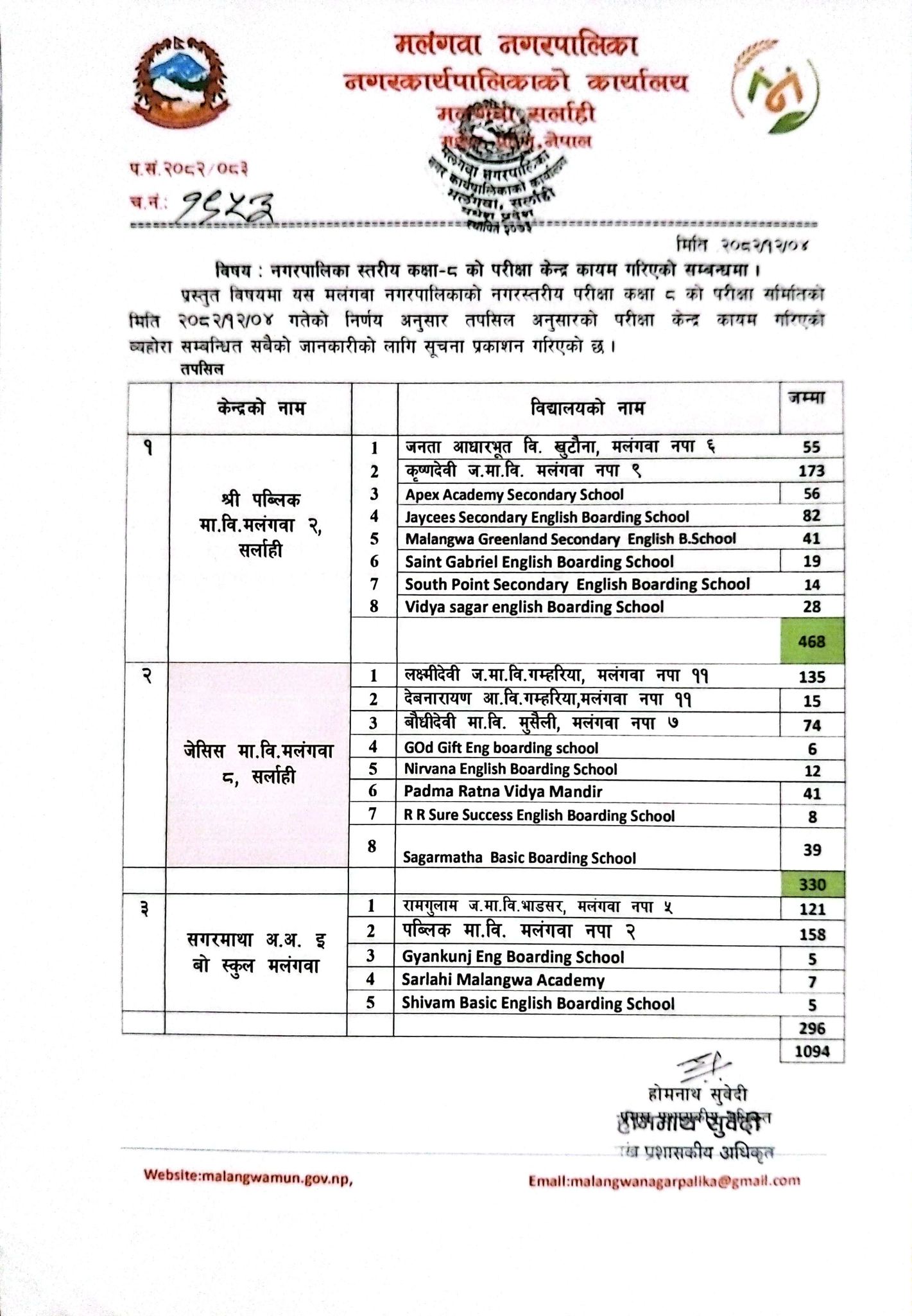 कक्षा ८ को परीक्षा केन्द्र तोकिएको सम्बन्धमा