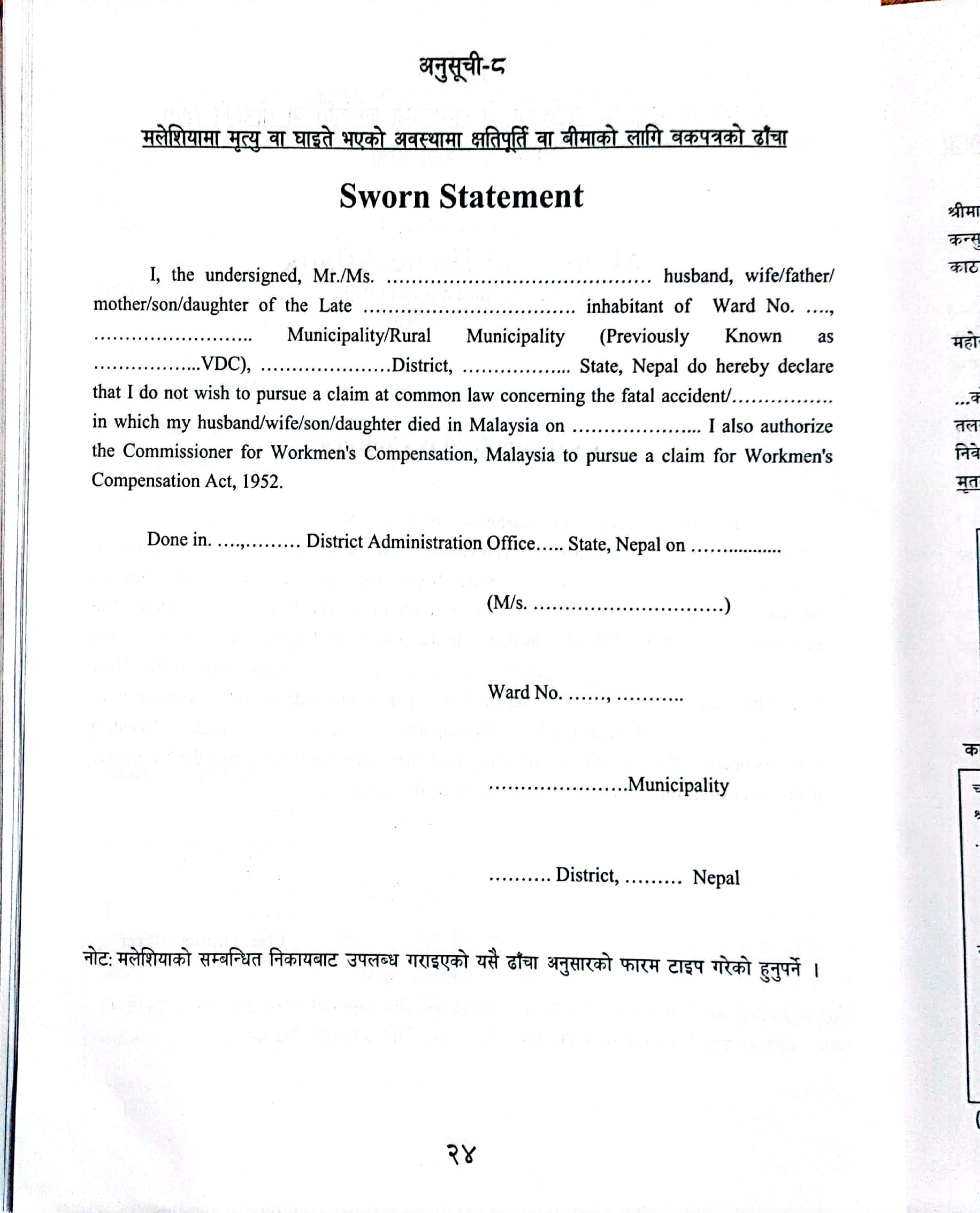 सम्पति विवरणको नमुना फारम