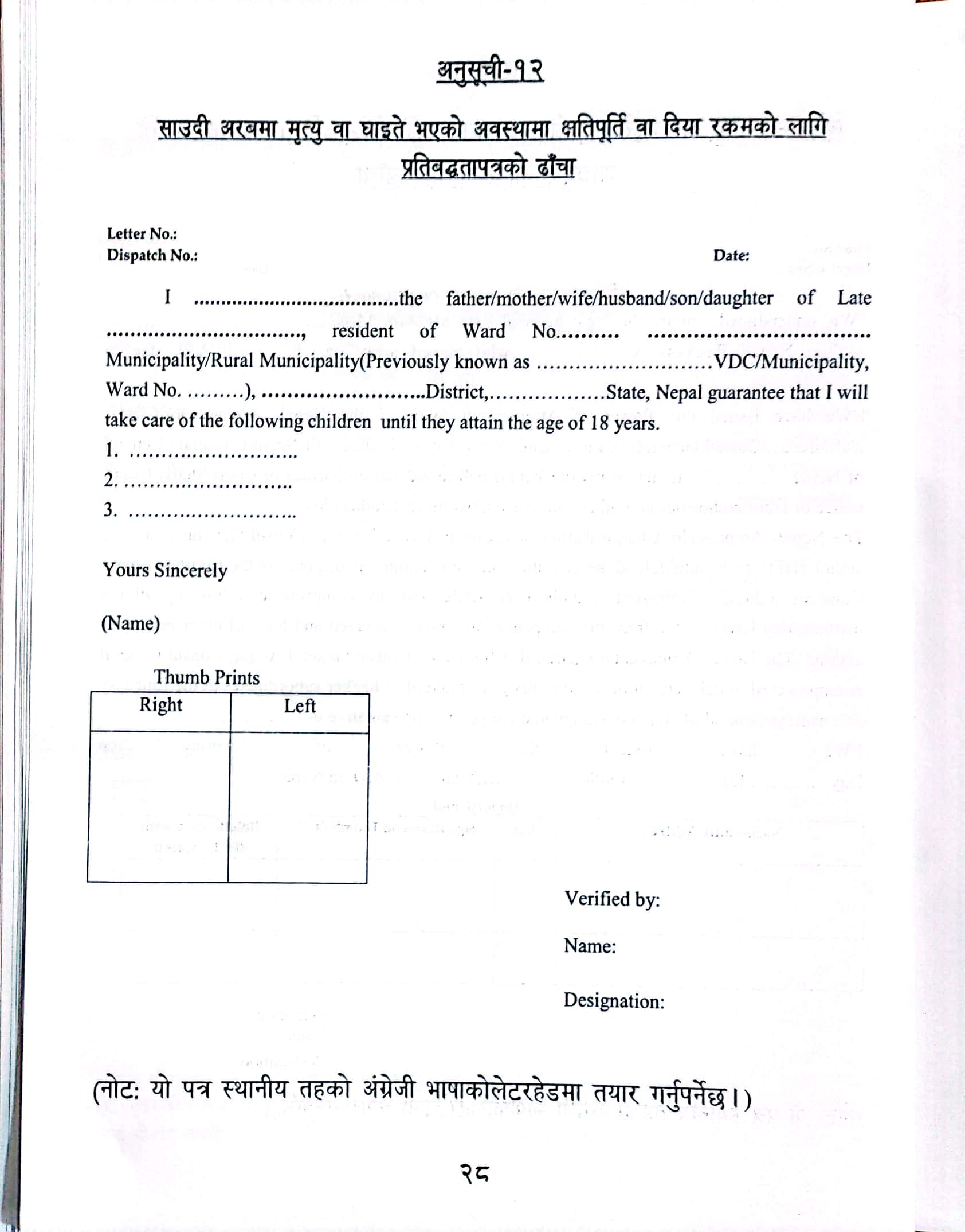 सामाजिक सुरक्षा अन्तर्गत परिचयपत्र नविकरण विवरणको नमुना फारम ।